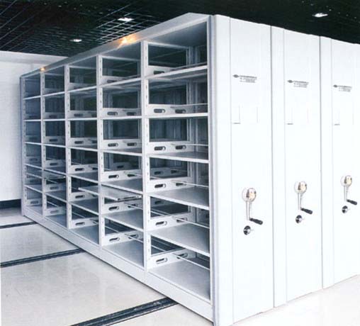 3、病例密集架經測試證明推動力與負載量的比例為:1:1500,即以1公斤的力度足以推動1500公斤的承重;