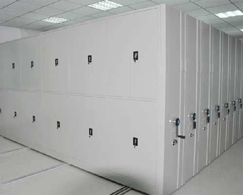 每列柜體結構均裝有制動裝置,以保證查閱人員的人身安全。使用一級冷軋鋼板,各列柜體間裝有強磁性橡膠密封條,頂部裝有防塵板,底部裝有防鼠裝置,合攏后無間縫,可起到防塵、防鼠、防盜、防光的作用。